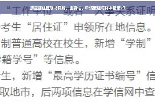 在当今社会,随着城市化进程的加速,越来越多的人涌入城市谋求发展,购房安居成为他们的首要任务,在这个过程中,房屋居住证明书的作用日益凸显,本文将详细介绍房屋居住证明书的重要性及申请流程,帮助广大市民更好地了解和运用这一重要证明。