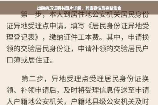 在现今社会,随着医疗技术的不断进步,人们对于医疗服务的需求也在日益增长,病历证明书作为医疗过程中的重要文件,对于患者和医疗机构都占据着举足轻重的地位,本文将重点探讨出院病历证明书图片的重要性,并详细阐述其相关内容。