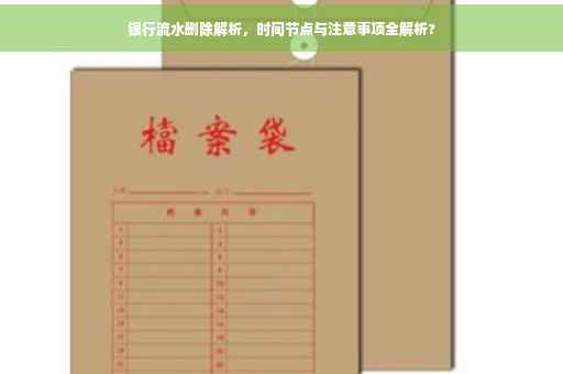 摘要:本文将解析银行流水的删除时间节点和关键注意事项。文章指出,银行流水的删除时间因银行政策而异,并非统一标准。流水记录的重要性不容忽视,因此在处理银行流水时需注意保存和备份。阅读本文,将帮助您了解银行流水的删除频率及相关重要事项。
