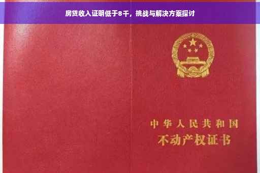 摘要:面对房贷收入证明低于8000元的现实挑战,需要采取应对策略。可考虑增加收入证明中的其他收入来源,如兼职收入或奖金等,以提升整体收入证明水平。可考虑延长贷款期限,降低每月还款压力。优化个人财务规划,节约开支,为房贷腾出更多资金空间。面对这一挑战,关键在于合理规划个人财务,灵活应对,以顺利获得房贷。