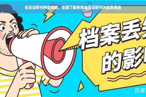 摘要:本文将详细介绍生活证明书的种类及其内容。通过本文,您将了解到各类生活证明书的作用、适用范围以及所需提供的具体信息。内容涵盖身份证、户口本、工作证明、收入证明等常见类型,旨在帮助您更好地理解和使用生活证明书,为您的生活和工作提供便利。
