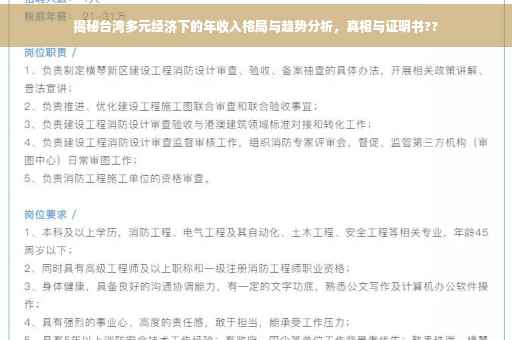 摘要:台湾经济多元化背景下,年收入真相揭秘。本文将探讨台湾的收入格局和趋势分析,通过深入分析不同行业、职业和地区的收入差异,揭示年收入的真实面貌。本文还将提供年收入证明书,帮助读者更好地了解自身收入水平。文章旨在帮助读者了解台湾经济现状,为未来职业发展提供参考。
