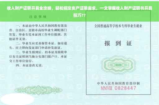在现代社会,无论是申请贷款、办理信用卡、租房还是移民等场合,收入财产证明成为了重要的证明材料之一,很多人对于如何开具收入财产证明存在疑惑,本文将详细介绍收入财产证明的开具流程,帮助大家轻松搞定资产证明需求。