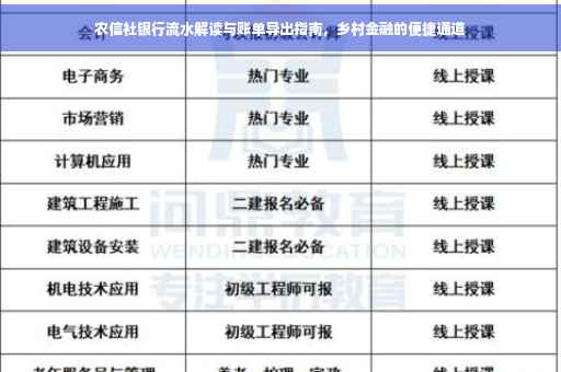 随着数字化时代的到来,银行业的发展速度前所未有,作为金融服务重要组成部分的农村金融机构,扮演着举足轻重的角色,特别是农信社银行,作为乡村金融的主力军,其流水情况更是备受瞩目,本文将带您深入了解农信社银行的流水情况,一同探寻乡村金融的发展脉络。