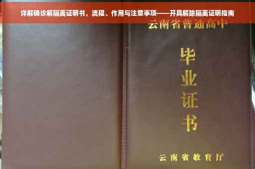 摘要:本文将详细介绍确诊解隔离证明书的流程、作用及注意事项。通过本文,您将了解如何开具解除隔离的证明,包括由谁开具、具体步骤和所需材料。阅读本文,您将更好地理解解隔离证明书的重要性和申请流程,以确保个人健康和他人的安全。