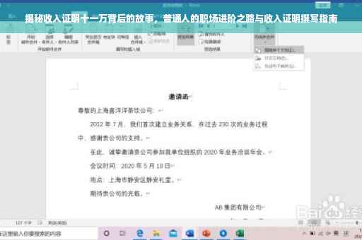 在当今社会,收入证明十一万可能对于很多人来说是一个相对较高的收入水平,这一数字背后所蕴含的故事和付出却鲜为人知,本文将带你走进一个普通人的职场世界,揭示他们如何通过不断努力、学习和成长,实现收入的稳步增长。