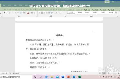 银行流水查询规定是指针对个人和企业客户提供的银行流水查询服务所制定的一系列规定和准则,这些规定旨在保障客户的知情权、保护客户隐私、防止信息泄露,并规范银行流水查询的操作流程。