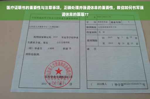 在当今社会,健康已成为人们最为关注的话题之一,随着生活节奏的加快和工作压力的增大,越来越多的人开始关注自己的身体健康,医疗证明书作为医疗过程中重要的法律文书,具有证明病情、指导治疗的作用,本文将围绕医疗证明书的重要性以及如何正确处理,特别是强调休息的重要性展开详细阐述。