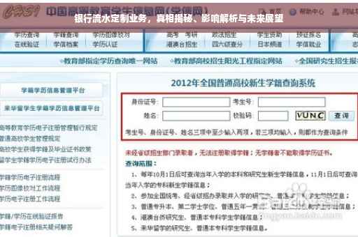 随着互联网技术的不断进步和金融行业的飞速发展,银行流水定制业务逐渐进入公众视野,这一新兴服务模式的出现,不仅改变了人们对银行业务的传统认知,更在一定程度上影响着金融市场的格局,本文将深入探讨银行流水定制业务的真相、影响及未来发展,帮助读者全面了解这一业务。