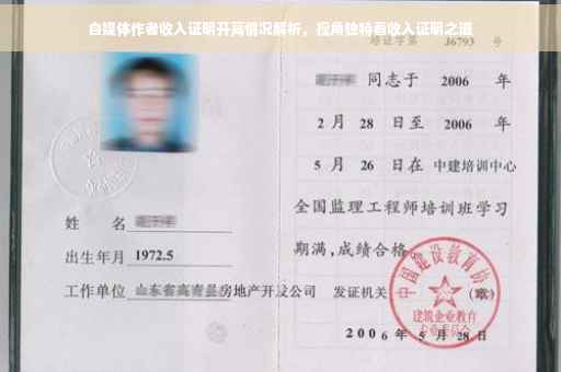 自媒体作者收入证明开高情况说明:由于自媒体行业的特殊性,作者通过创作优质内容吸引大量读者,进而产生收益。收入证明可能高于一般职业。此情况基于作者的创作能力、粉丝数量及内容质量等因素。在提供收入证明时,需注明实际情况,确保信息真实可靠,以反映自媒体行业的实际收入状况。