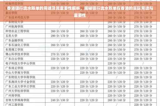 随着全球经济的日益发展,香港作为国际金融中心的重要性日益凸显,在日常生活中,越来越多的人开始关注个人财务管理,而银行流水账单作为个人财务记录的重要组成部分,其用途也日益广泛,本文将详细介绍香港银行流水账单的用途及其背后的意义。