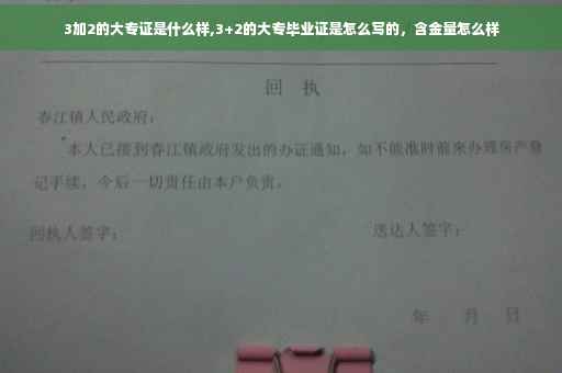 3+2大专是中专学校开设的一种班,就是初中毕业生在中专报名读五年书就可以直接拿大专毕业证了,其实是成人高考大专毕业证,只有通过对口高职进入的大专才是全日制,所以3+2的大专毕业证是成人高考大专毕业证,含金量不如全日制。