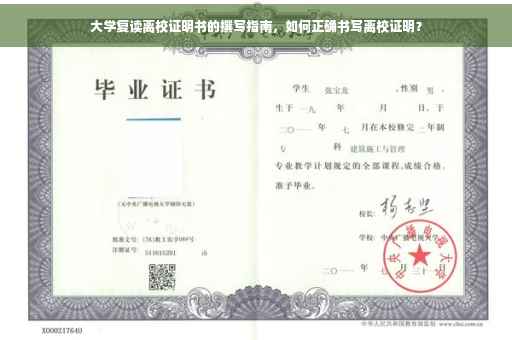 摘要:,,本文介绍了如何撰写大学复读离校证明书。该证明书是一份重要的文件,需要准确记录学生的个人信息、复读时间和离校原因等内容。撰写时需注意格式规范、内容真实准确,包括学生的基本信息、复读期间的学业表现以及离校原因等。离校原因需要具体明确,同时要注意措辞礼貌、客观。本文旨在帮助需要撰写大学复读离校证明书的学生和家长,提供一份可供参考的模板和注意事项。