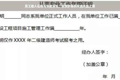 随着现代社会的发展,越来越多的人开始追求更高的生活质量,贷款买车成为了实现这一目标的手段之一,在申请贷款买车的过程中,员工收入证明成为了至关重要的环节,本文将探讨员工收入证明的重要性及其在贷款买车方面的应用,帮助读者更好地理解和应对这一挑战。