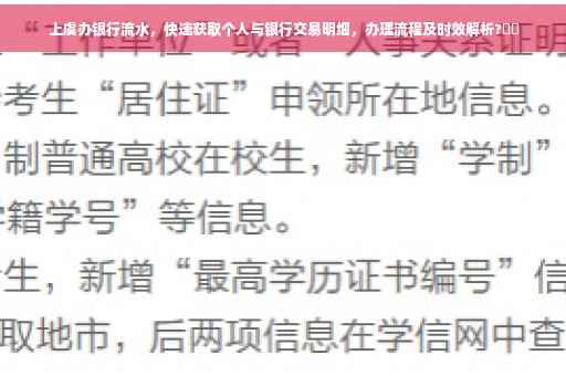 在现代社会,银行流水作为个人经济活动的记录,越来越被广泛应用于各种场合,如贷款申请、签证办理、税务申报等,上虞地区的居民对于如何办理银行流水存在诸多疑问,本文将详细介绍上虞办银行流水的流程、所需材料以及注意事项,帮助大家轻松获取个人与银行交易明细。