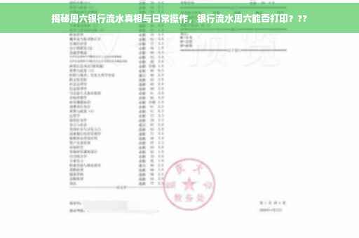 摘要:本文将探讨银行周六的流水情况,揭示银行流水背后的真相以及日常操作。读者将了解银行流水的重要性,包括其定义、作用以及查询方法。本文还将解答读者关心的问题,如银行流水周六是否可以打印,为读者提供必要的指南。
