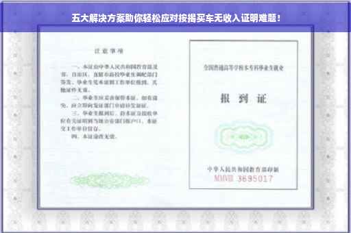 在当今社会,随着人们生活水平的提高,越来越多的人选择购买汽车作为出行工具,在办理按揭买车过程中,收入证明成为了重要的材料之一,没有收入证明可能会让许多消费者陷入困境,按揭买车没收入证明怎么办?本文将为你提供五大解决方案,助你轻松应对这一问题。