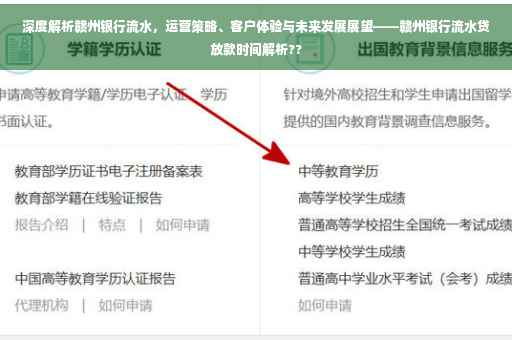 摘要:,,本文深度解析赣州银行流水,探讨其运营策略、客户体验及未来发展展望。文章指出,赣州银行在流水贷方面,下款时间取决于客户提供的流水账单质量及银行审核流程。银行致力于优化运营策略,提升客户体验,并展望未来发展趋势,积极应对市场挑战。