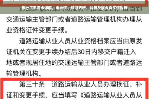 摘要:银行工资流水是记录个人或企业在银行工资收入的重要证明,对于贷款申请、信用卡办理等金融事务具有重要意义。获取银行工资流水可以通过网上银行、银行柜台等方式。解析银行工资流水时,需关注收入、支出、余额等关键信息。银行工资流水摘要需真实反映工资情况,不可自行修改。本文详细解读了银行工资流水的重要性、获取方法及解析要点。