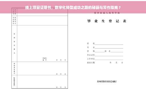 本文详细介绍了线上项目的发展历程、现状和未来趋势,以及线上项目证明书的重要性和作用,本文还探讨了如何撰写一份有效的线上项目证明书,希望能为广大读者提供有益的参考,随着数字化转型的加速推进,线上项目将成为未来的主流模式之一,企业和个人应抓住机遇,积极投身于线上项目的开发和运营,并通过撰写有效的线上项目证明书来展示成果、提升信誉、吸引投资和助力市场推广,才能在激烈的竞争中脱颖而出,实现数字化转型的成功,在撰写线上项目证明书时,还需要注意以下几点: