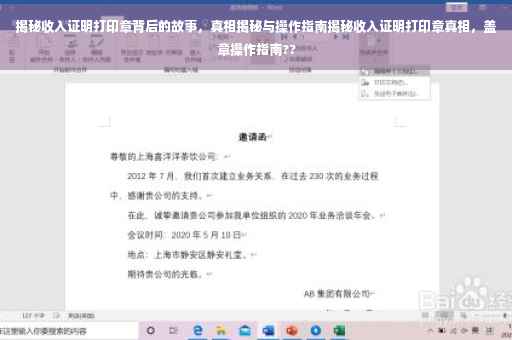 揭秘收入证明打印章的过程,探究其背后的真相与实际操作指南。了解如何正确打印收入证明章,包括章的格式、使用方法和注意事项。文章将揭示在打印过程中可能遇到的困难与问题,并提供解决方案。还将提供操作指南,帮助读者顺利完成收入证明章的打印工作。