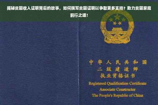 摘要:本文将揭示贫困收入证明背后的故事,介绍如何为贫困家庭争取更多支持。文章将指导读者如何撰写一份有效的贫困收入证明,包括详细步骤和注意事项。通过规范的格式和真实案例,帮助贫困家庭更好地展示自己的困境,争取社会各界的支持和帮助。本文将提供实用的建议和启示,帮助贫困家庭走出困境。