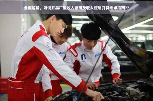 摘要:本文将全面解析如何开具厂里收入证明,包括收入证明的开具机构、所需材料、流程等细节。文章指出,收入证明通常由所在单位的人力资源部门或财务部门开具,需要提供身份证明、工作证明、工资流水等材料。本文将指导读者了解整个开具过程,并解决常见问题,如收入证明格式、真伪鉴别等,以帮助读者顺利获取收入证明。
