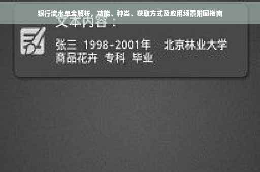 随着金融行业的快速发展,越来越多的人开始关注个人财务管理,在这个过程中,银行流水单成为了我们生活中不可或缺的一部分,本文将详细介绍银行流水单的功能、种类、获取方式及应用场景,帮助大家更好地了解和使用这一重要金融工具。