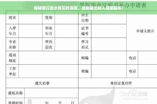 了解银行流水的重要性及其背后的原因也有助于我们更好地理解和使用银行流水,通过揭开银行流水的神秘面纱,我们能更加了解这一重要的金融工具,银行流水作为银行业务的重要组成部分,对于个人和企业来说都具有重要意义,我们应该关注银行流水的细节,了解其原因,以确保其真实性和可靠性,也要妥善保管好银行流水,以维护个人信用。