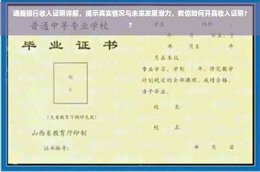 摘要:通商银行收入证明是一份重要的文件,真实反映了个人或企业在通商银行的收入状况。开具此证明需要前往通商银行,提供相关身份证明和账户信息,以验证个人或企业的收入情况。此证明不仅有助于了解个人或企业的经济实力,也是评估未来发展潜力的重要依据。通过收入证明,可以展望通商银行的服务质量和未来发展前景,为个人和企业提供更多机遇。