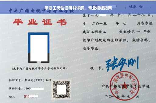 摘要:,,本证明书为喷漆工岗位证明书模板,用于证明员工在喷漆工岗位上的工作表现及资格。该模板内容包括岗位名称、员工姓名、职务、入职时间、工作职责、工作表现评价及证书颁发日期等基本信息。此证明书旨在确认员工具备相关喷漆技能,并胜任该岗位工作,以保障生产质量和效率。