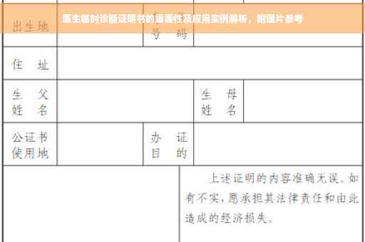 摘要:,,医生临时诊断证明书是医疗领域中的重要文件,具有极高的实用价值。它是对患者病情及健康状况的即时评估,为医生提供治疗依据,同时也为患者争取及时有效的治疗提供了保障。诊断证明书还能帮助患者请假休息、申请医疗救助等。本文还将附带医生临时诊断证明书图片,以更直观地展示其实际应用。