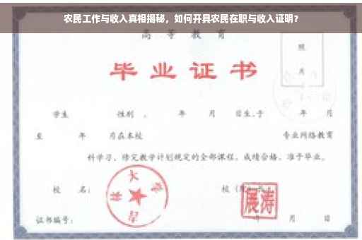摘要:本文将介绍农民在职与收入证明的重要性,揭示农民辛勤耕耘背后的真实面貌。本文将指导读者如何开具农民在职和收入证明,包括相关流程和注意事项,以帮助人们更好地了解农民的工作和收入状况,认识农民的贡献与价值。