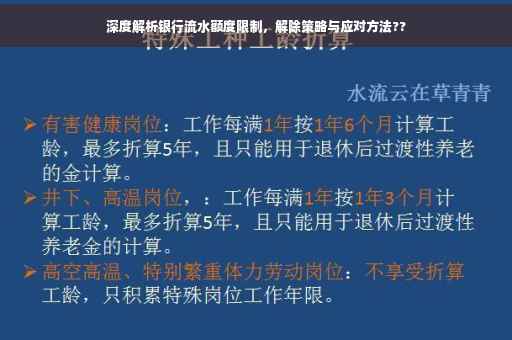 摘要:银行流水额度限制是银行对客户资金流动的一种管理手段,对于个人和企业来说,了解并应对这种限制至关重要。本文深度解析了银行流水额度限制的原因和具体表现,并提供了实用的应对策略。针对如何解除银行流水额度限制,给出了具体的建议和方法。帮助读者更好地管理资金,规避不必要的麻烦。