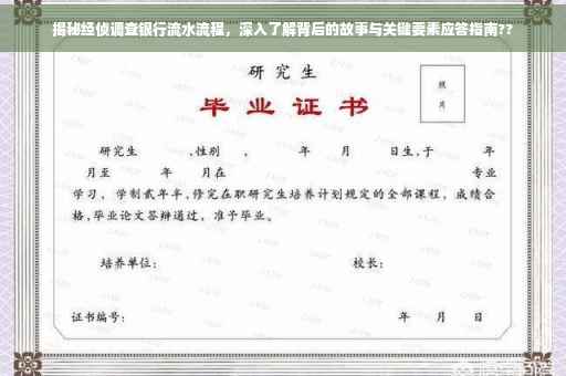 摘要:本文将揭示经侦调查银行流水的过程,深入了解其中的关键要素和流程。在经侦询问银行流水时,需要注意提供准确、全面的信息,包括账户持有人的身份信息、交易记录等。通过本文,读者可以更好地了解如何应对经侦调查银行流水的问题,并保护自己的合法权益。