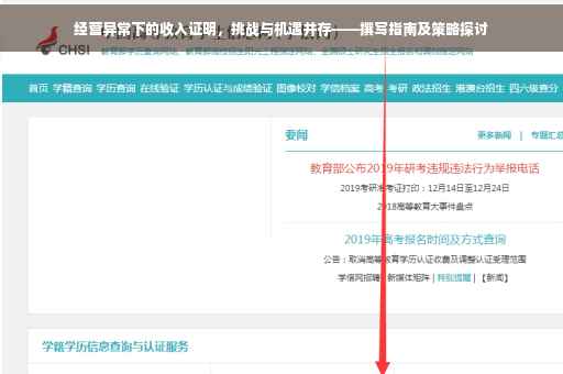 摘要:在经营异常情况下,收入证明撰写是一项挑战与机遇并存的任务。需清晰、准确地展示实际收入状况,同时说明经营异常的特殊背景。挑战在于如何合理、有效地证明非传统经营环境下的收入状况;机遇则在于通过这一证明,展示企业适应市场变化的能力及潜在发展空间。撰写时,应着重强调收入来源的合理性、稳定性及增长趋势,同时提供具体数据支持,以体现企业的抗风险能力和市场适应能力。
