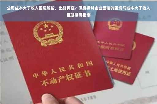 摘要:当公司成本大于收入时,企业面临经营困境。这种情况需要深入分析并寻找出路。成本过高可能是由于生产效率低下、管理不善或原材料价格上升等原因造成的。为解决这一问题,企业应加强成本控制,优化生产流程,提高产品质量,同时寻求新的市场机会和合作伙伴,以实现盈利目标。在撰写成本大于收入证明时,应详细列举成本构成、收入状况及产生困境的原因,并提出具体的解决方案和预期效果。