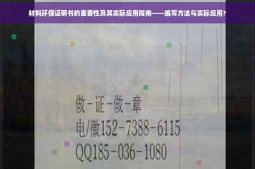 摘要:材料环保证明书对于确保材料符合环保标准至关重要,其实际应用广泛。撰写材料环保证明书时,需明确阐述材料的环保性能、符合的环保标准、检测方法及结果。本文介绍了材料环保证明书的重要性及其撰写方法,帮助读者了解如何有效地出具符合要求的材料环保证明书,以确保材料的环保合规性。