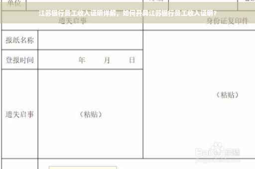 江苏银行员工收入证明详解:员工如何开具收入证明。文章介绍了江苏银行员工收入证明的重要性、开具流程、所需材料以及注意事项。读者可以了解江苏银行员工收入证明的具体内容和格式,包括收入类型、发放时间、具体金额等详细信息。文章旨在帮助员工正确、便捷地开具收入证明,解决相关财务问题。