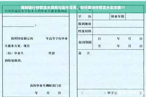 摘要:本文将揭示银行存管流水的真相及操作指南。读者将了解如何查询银行存管流水,包括步骤和注意事项。通过本文,读者可以了解到银行存管流水的重要性和作用,以及如何确保查询结果的准确性和安全性。对于需要查询银行存管流水的人来说,本文提供了实用的指导和建议。