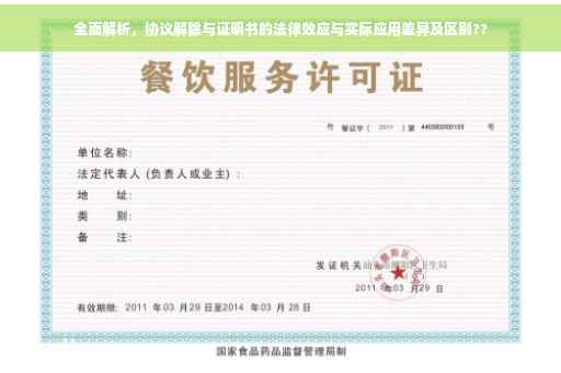 摘要:本文将全面解析解除协议与证明书在法律效应和实际应用上的区别。解除协议是双方协商一致后达成的约定,用于终止原有合同关系并可能涉及相关权益的处置。而证明书则是对某一事实或情况的证明文件,具备法律效力,用于证明特定事实的真实性。二者在法律效应和应用上有所不同,本文将为您详细解读。