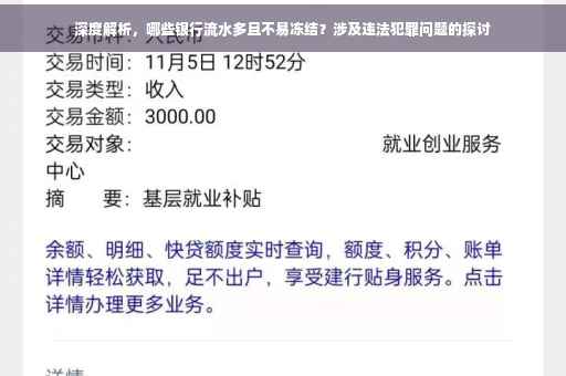 摘要:,,本文深度解析了关于银行流水的问题,探讨了哪些银行的流水较多以及哪些银行的流水不易被冻结。文章明确指出,涉及违法犯罪问题的银行流水是不被推荐的,提醒大家要遵守法律法规,远离非法行为。也介绍了部分银行的流水情况,为读者提供参考。