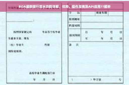 随着科技的快速发展,银行业务也在不断创新和升级,BOA银行作为行业内的佼佼者,其最新推出的银行流水服务受到了广大用户的关注和好评,本文将详细介绍BOA最新银行流水的功能、优势及如何操作,帮助大家更好地了解和使用这一服务。