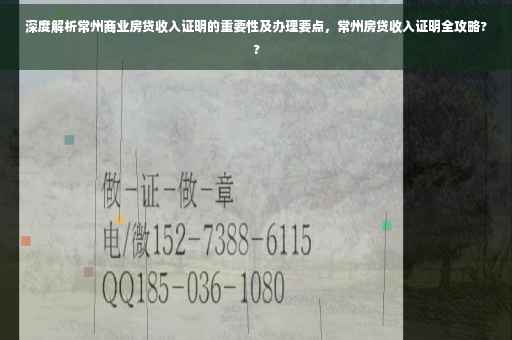 随着房地产市场的繁荣发展,越来越多的人选择通过商业房贷购买房屋,在申请商业房贷的过程中,收入证明是一个至关重要的环节,本文将围绕常州商业房贷收入证明的重要性、办理流程及相关注意事项展开详细解析,帮助广大市民更好地了解并顺利办理商业房贷。