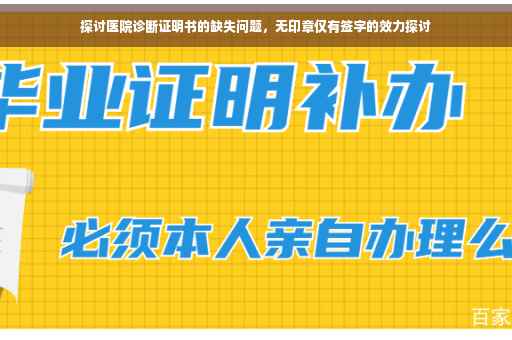 摘要:本文探讨了医院诊断证明书缺失的问题,特别是当诊断证明书没有盖章仅有签字时是否有效。文章指出,诊断证明书是患者就医的重要凭证,其有效性对于患者的治疗及后续事宜具有关键作用。尽管有时诊断证明书可能没有盖章,仅有医生签字,但其法律效力仍需根据具体情况而定。本文旨在提醒患者和医生,确保诊断证明书的完整性和准确性,以保障患者的权益。