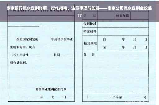 随着金融行业的快速发展,越来越多的人开始关注个人财务管理和银行流水的重要性,银行流水作为个人经济活动的记录,对于贷款申请、信用卡办理以及商务谈判等多个场景都具有重要意义,在南京地区,许多企业和个人对银行流水定制的需求逐渐增加,本文将详细介绍南京银行流水定制的相关知识,包括操作指南、注意事项以及常见问题解答,帮助读者更好地了解和使用银行流水定制服务。