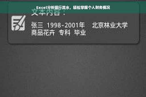 随着个人理财意识的增强,有效地管理个人财务状况变得尤为重要,银行流水作为个人财务的核心部分,其查看和管理备受关注,本文将指导您如何使用Excel这一常用工具,轻松查看和管理银行流水,助您更好地掌握个人财务状况。