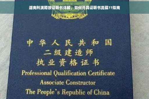 摘要:本文将详细介绍湖南刑满释放证明书的开具流程。首先介绍湖南刑满释放证明书的概念和作用,然后阐述如何申请开具此证明书,包括所需材料和流程。还将强调证明书的重要性和注意事项。通过阅读本文,读者可以更好地了解如何合法合规地获取刑满释放证明书,以便顺利回归社会。