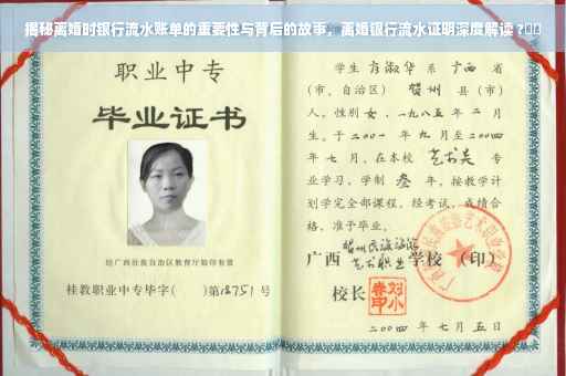 随着社会的快速发展,离婚现象在我们的生活中愈发普遍,在离婚案件中,财产分割往往是最为复杂且敏感的一环,为了证明自身的财产状况,银行流水账单成为了重要的证据之一,本文将深入探讨离婚时银行流水账单的重要性,并通过真实故事阐述其背后的情境。