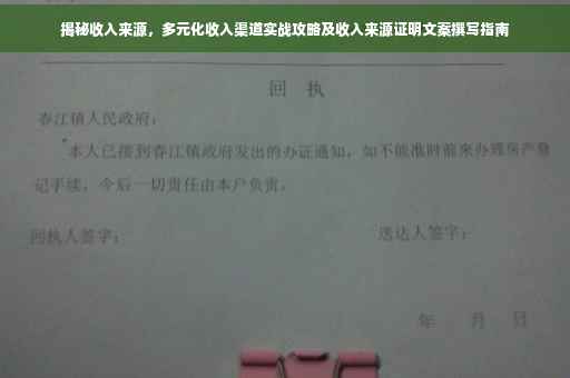 摘要:本文将揭示多元化的收入来源实战攻略,教你如何从不同渠道获取收入。本文还将介绍如何撰写有效的收入来源证明文案,包括要点和技巧。通过多元化的收入来源,个人可以更加稳定地应对经济风险,提高生活质量。本文将为你提供实用的方法和建议,帮助你开启多元化收入渠道的大门。